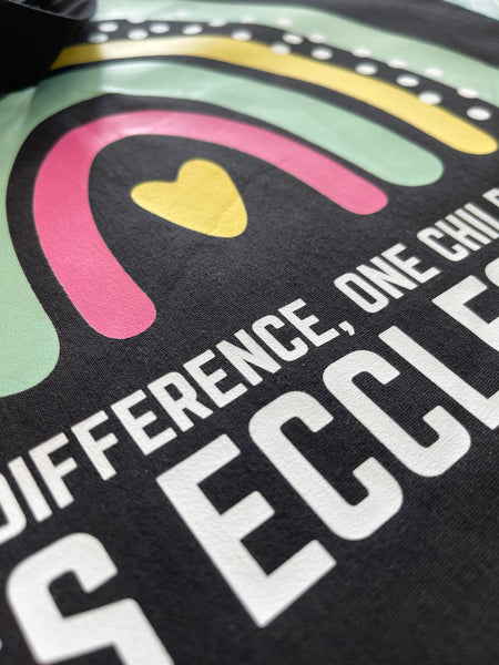 Join hundreds of happy customers who’ve gifted this personalised tote to inspire teachers. Featuring the uplifting message “MAKING A DIFFERENCE, ONE CHILD AT A TIME” and a vibrant rainbow graphic, this black cotton bag is customised with any name in a durable DTF print. See the rainbow and name pop against the sleek black cotton! Perfect for carrying classroom essentials—notebooks, snacks, or glitter pens—this bespoke gift is ideal for end-of-term, Back to School , or Teacher Appreciation Week. Enter their name and order now to make their day unforgettable!