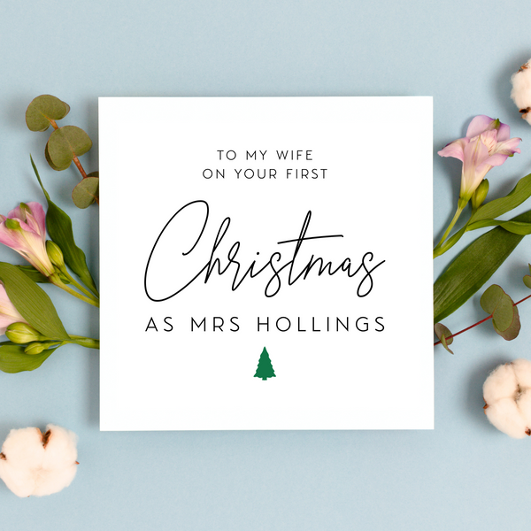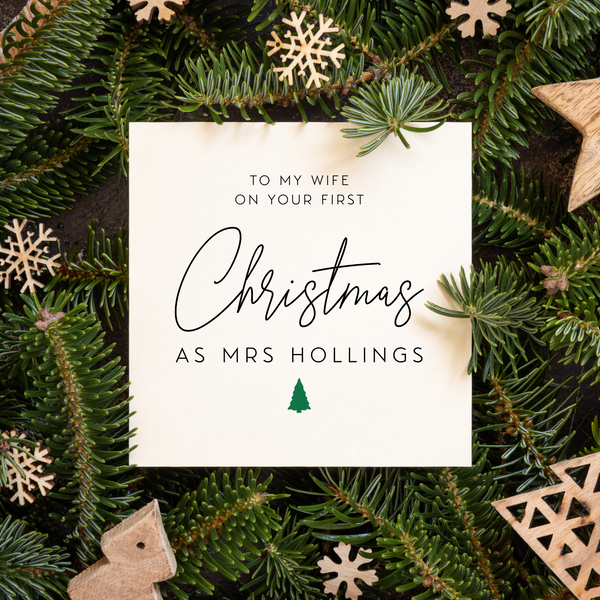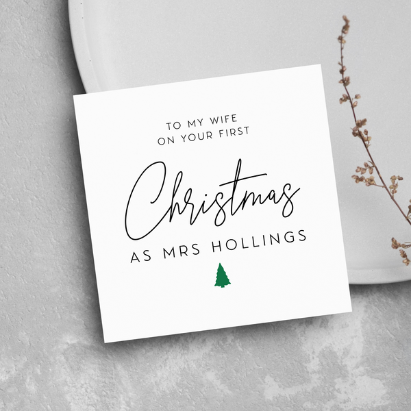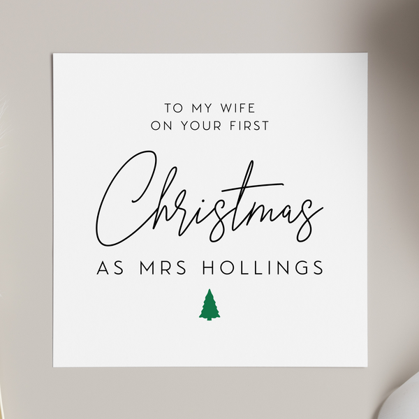 Wife First Christmas As Mrs Personalised New Surname Greeting Card