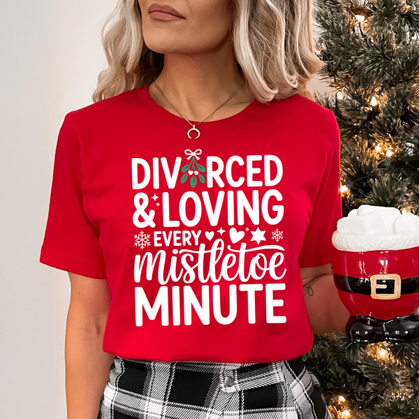 Newly single and absolutely thriving? Celebrate your festive season of freedom with our “Divorced & Loving Every Mistletoe Minute” T-shirt — the ultimate cheeky Christmas tee for anyone embracing their next chapter with style and sass, male or female!
