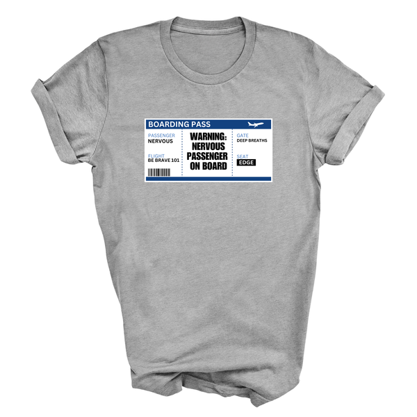 For those who experience flight anxiety, this unisex relaxed fit t-shirt offers a comfortable and stylish way to express your journey with nervous flyer adult humour. Crafted from 100% cotton (90% cotton, 10% polyester on the Sport Grey option), this casual travel outfit is perfect for anyone seeking a cozy yet meaningful addition to their wardrobe. Whether you're gifting an airplane lover or looking for a travel anxiety gift, this shirt blends comfort with personality to give your fear of flying a light-hearted spin.