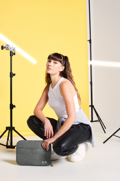 Polyester tech organiser cable, tablet storage bag, personalised with your initials on one side.